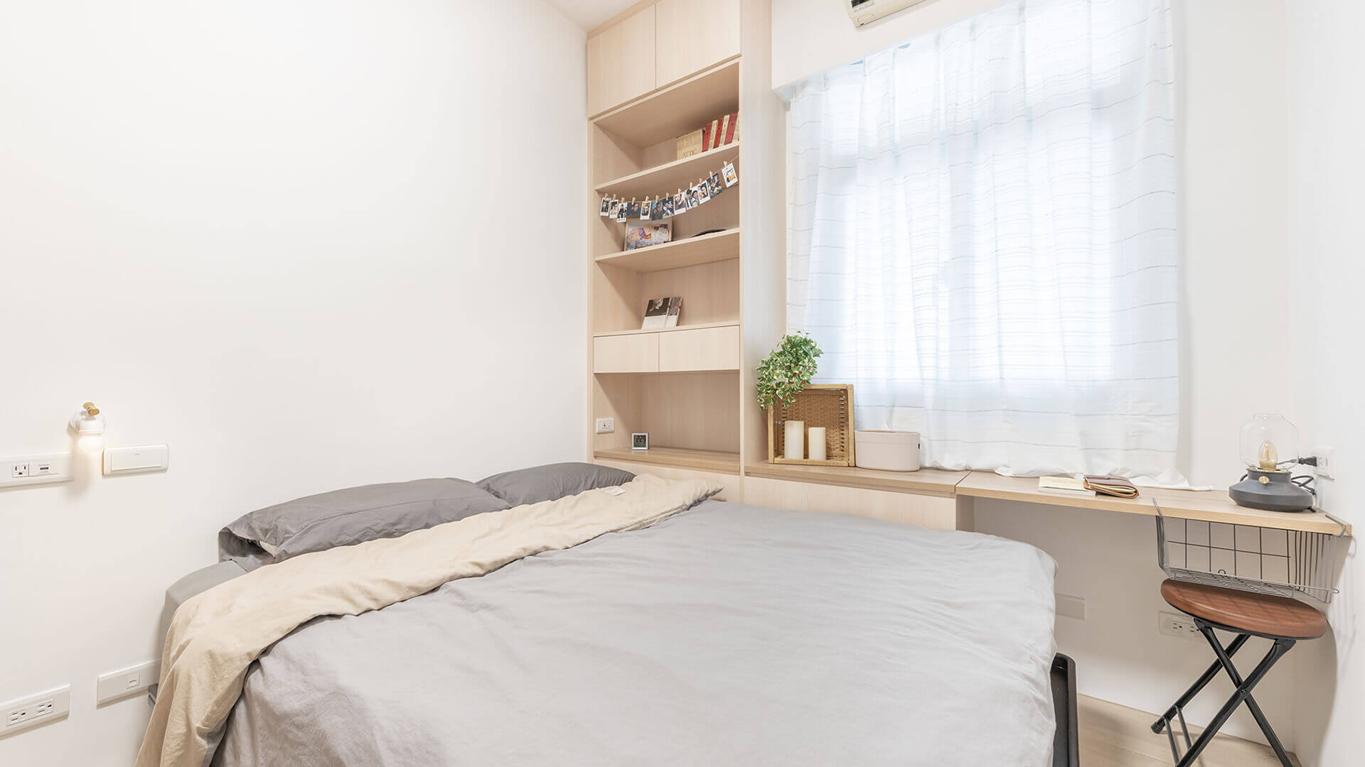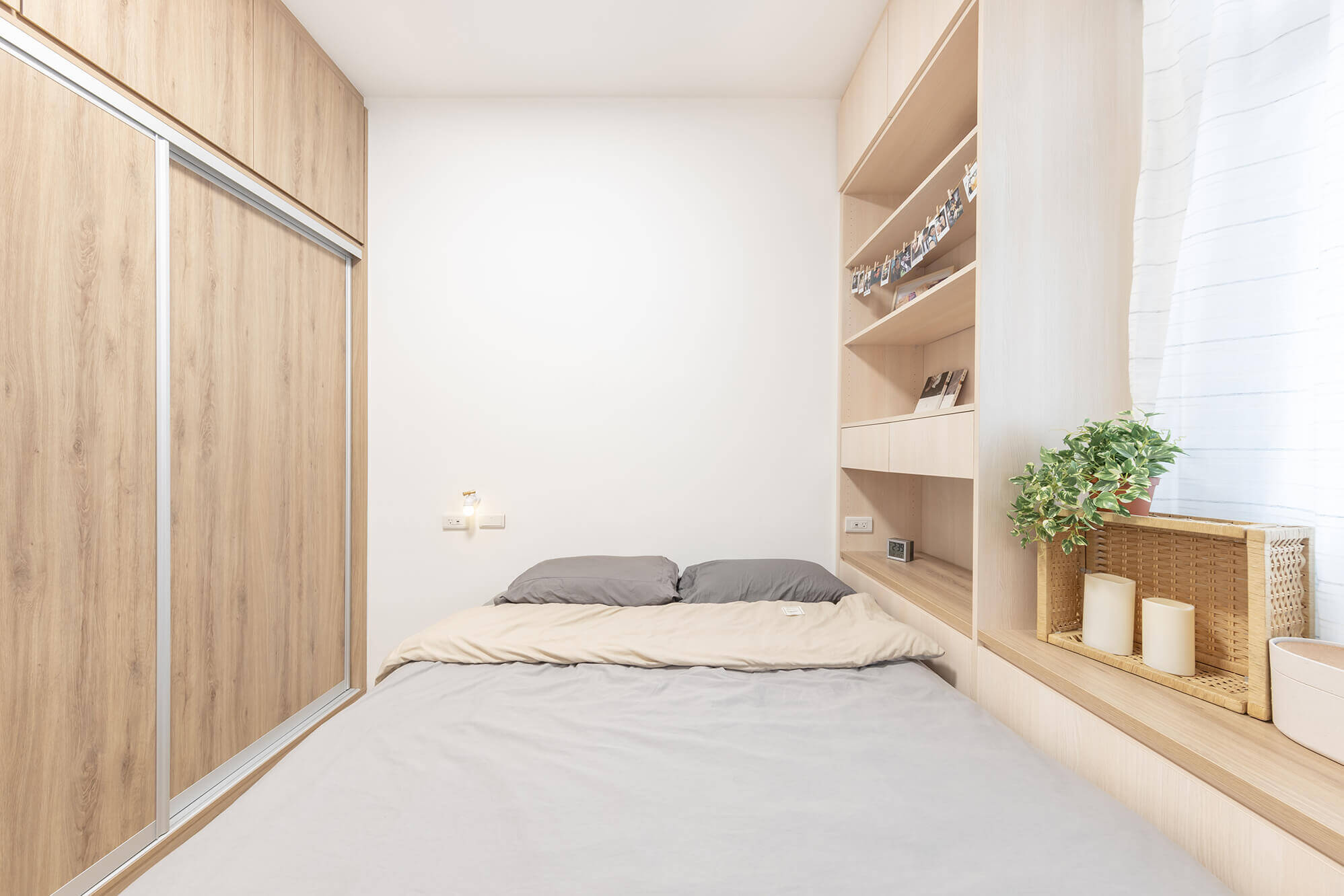 屋主喜愛簡約的風格,當初只想裝修自已的房間,但後來考量到未來成家,也希望媽媽住的舒適,所以全室翻修。媽媽把原本在睡的主臥給未來要成家的年輕人,自已睡小兒子的那個房間,空間大小也很夠用,大哥的房間就沒有含在本次裝修內。