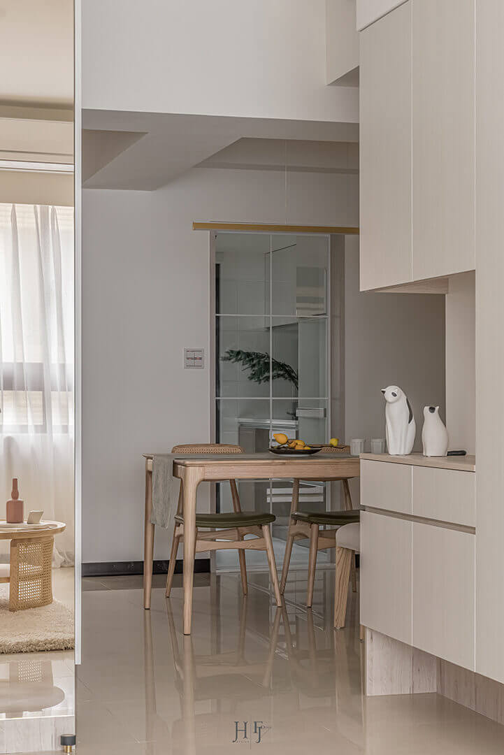 以最自然舒服的空間顏色,搭配原木家具,呈現純淨的居家生活空間